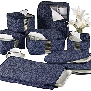 Amazon Com Fine China Storage Set Of 4 Quilted Cases For Dinnerware Storage Sizes 12 10 8 5 And 7 Long Gray Quilted Fabric Container With 48 Felt Plate Separators Included Home Kitchen